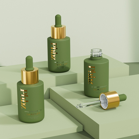 Flacon compte-gouttes en verre fantaisie de 30ml avec compte-gouttes de presse en gros 1oz flacon compte-gouttes de soin des cheveux brevet bouteille de sérum d'emballage cosmétique