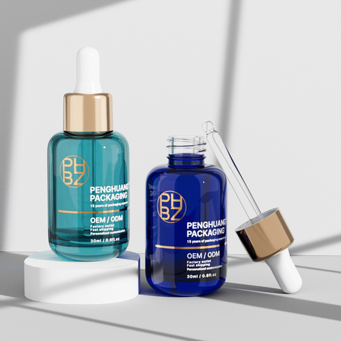 Bouteilles de sérum en verre de 30ml de couleur dégradée de beauté emballage de soin cosmétique personnalisé flacons compte-gouttes d'huile essentielle colorés 1oz